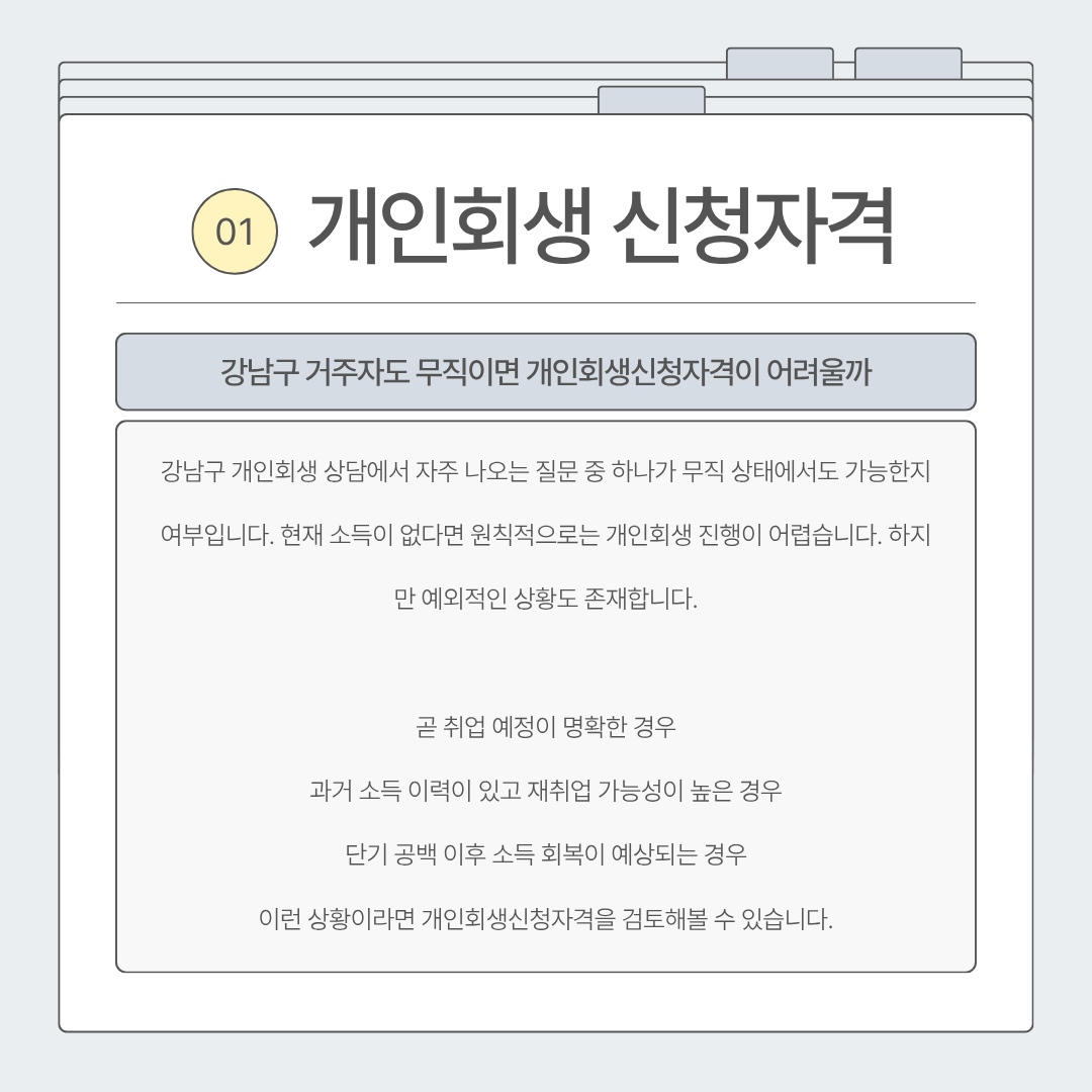 강남구 거주자도 무직이면 개인회생신청자격이 어려울까